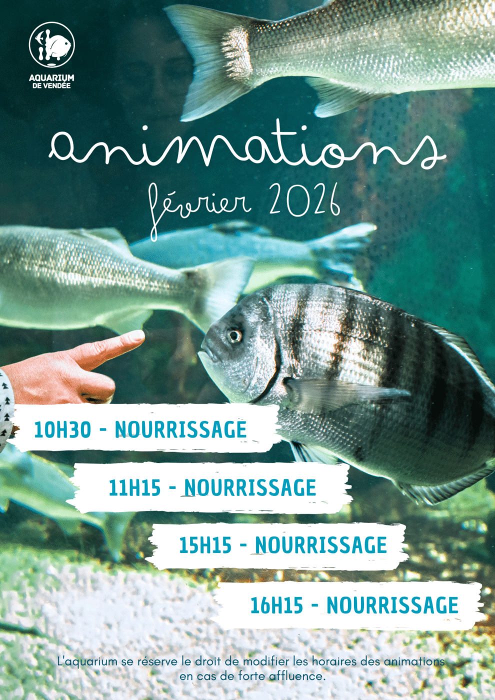 Les nourrissages ont lieu dans les différents univers de l’Aquarium, près de nos côtes dans le bassin « Les Sables d’Olonne » ou encore sous les tropiques dans le bassin